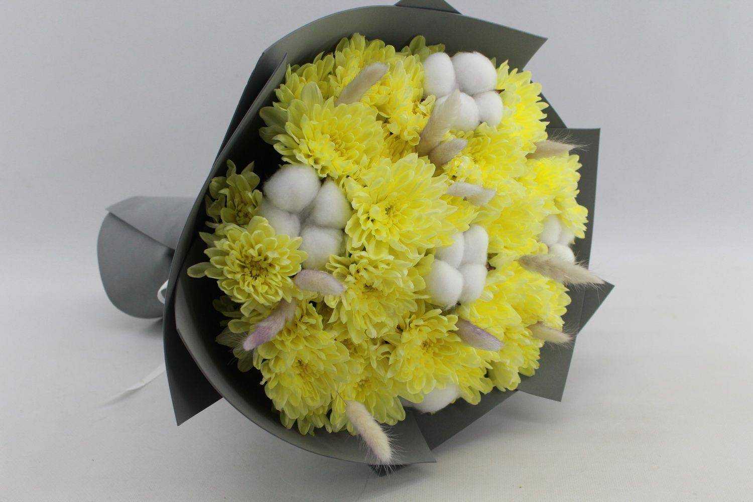 Мы можем предложить букет из хризантем любого цвета и сорта, которые есть в наличии на нашем складе! Свяжитесь с нашим оператором, и мы поможем выбрать самый подходящий букет для Вас!